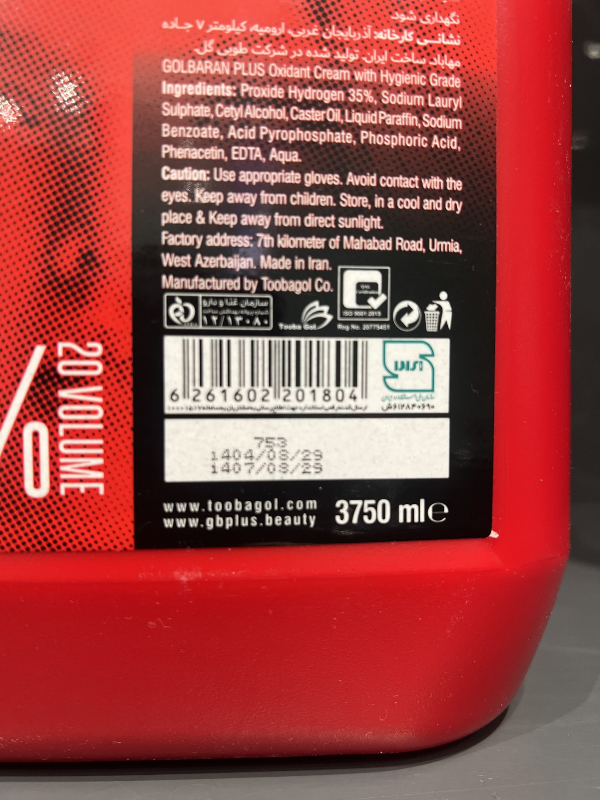 اکسیدان ۹٪ ۴ لیتری (برند GB plus)