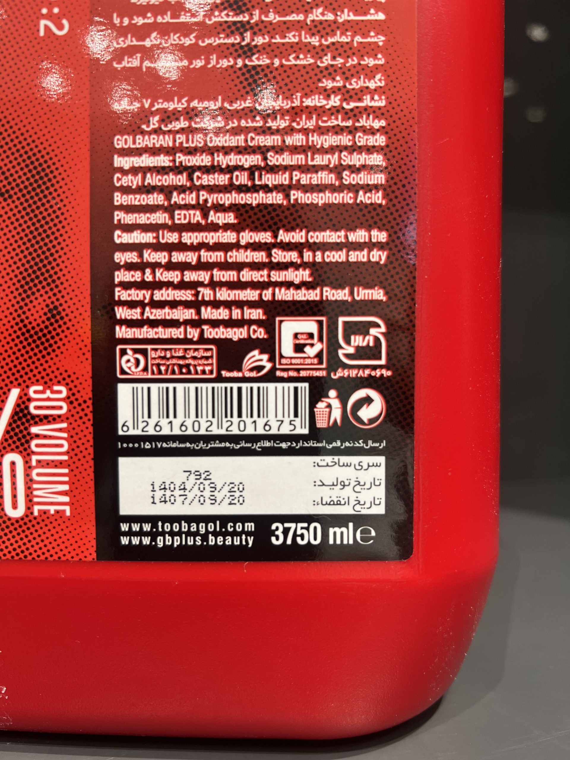 اکسیدان ۹٪ ۴ لیتری (برند GB plus)